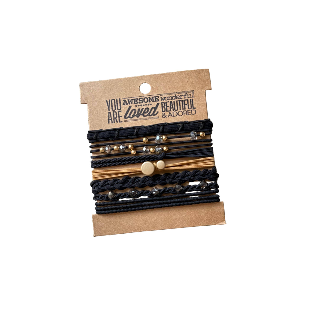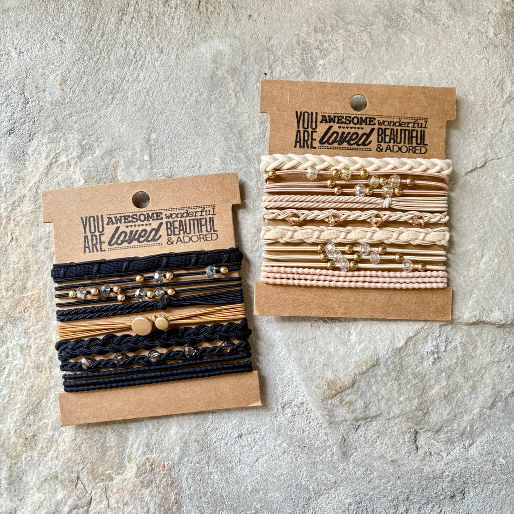 These Boho style hair ties are unique, decorative and oh so cute! Whether using your hair ties to hold up that luscious ponytail or stacking them on your wrist to add some outfit pizzazz, you can't go wrong. Hair ties come on a recycled card complete with words of encouragement that will surely put a smile on her face!