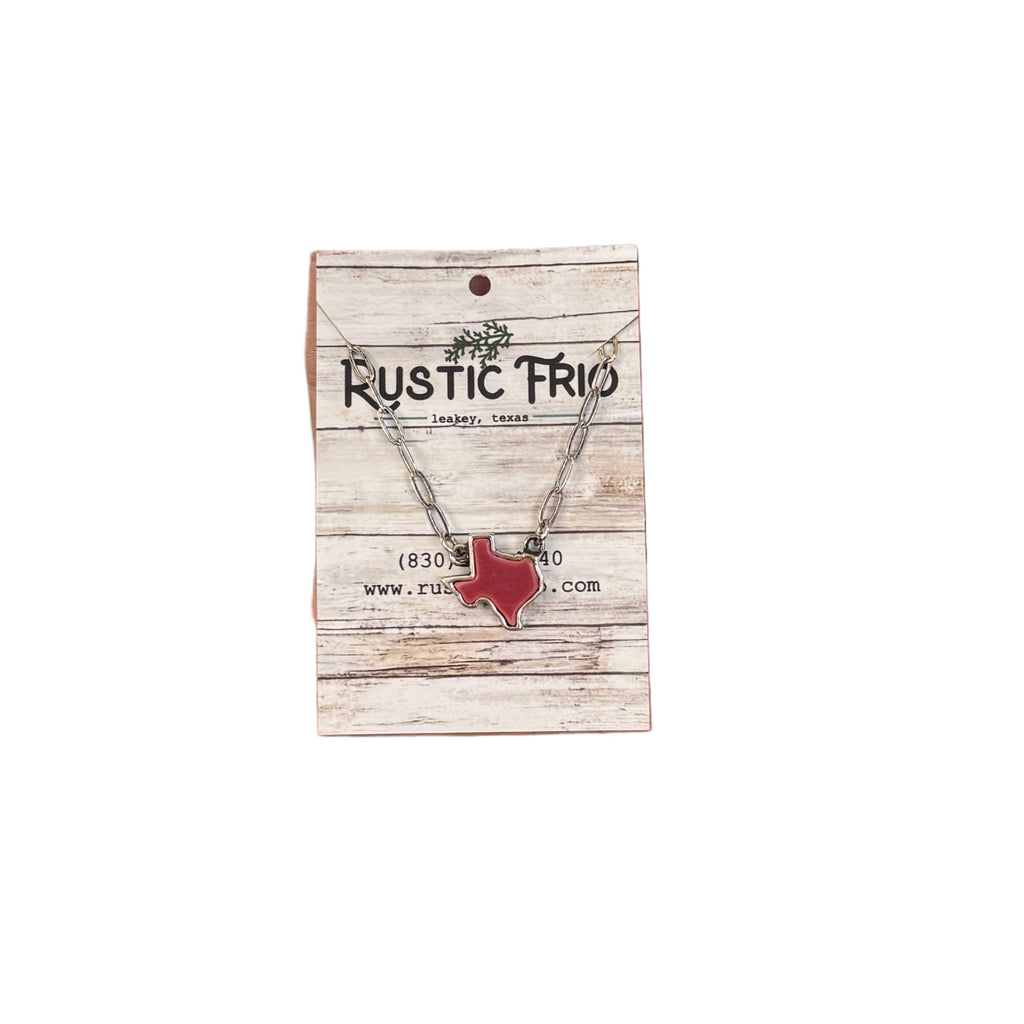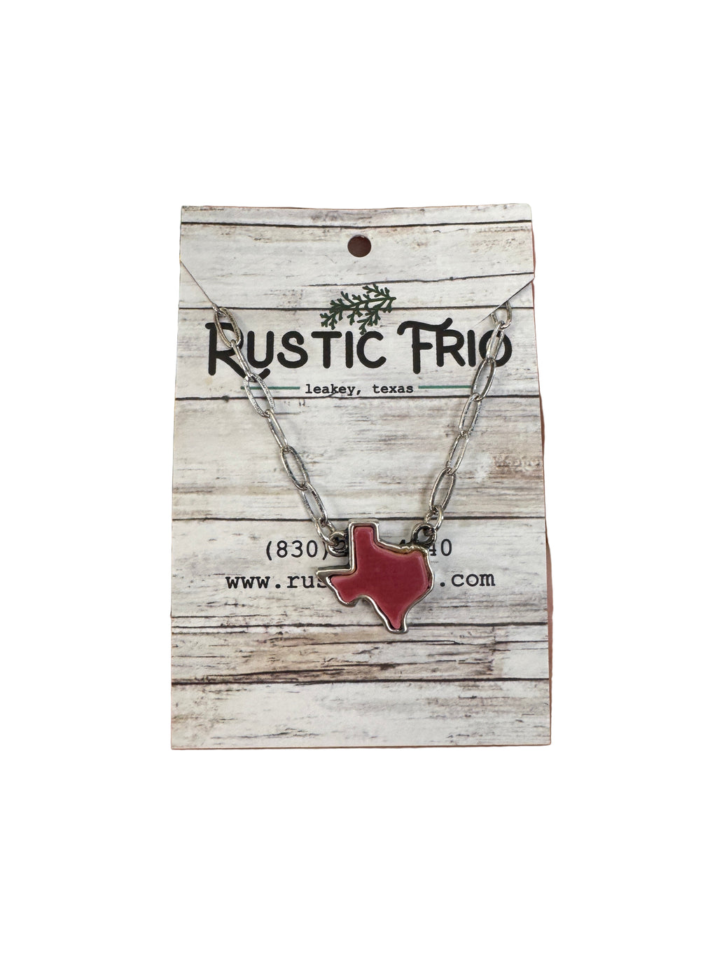 Celebrate your Lone Star pride with this playful Texas Agate Necklace. Featuring a sparkling silver chain and a uniquely shaped agate pendant that mirrors the great state of Texas, this necklace adds a touch of bold charm to any outfit. Perfect for those who love a little adventure and want to carry a piece of Texas wherever they go!