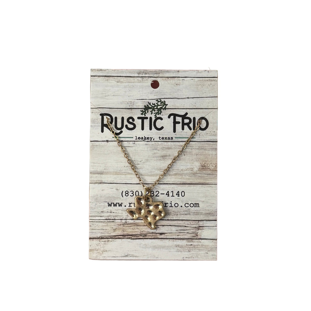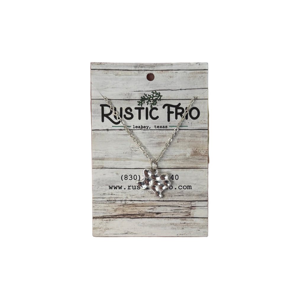 Celebrate your Lone Star pride with this playful Texas Textured Necklace. Featuring a hammered texture that catches the light beautifully, the pendant combines gold and silver tones for a stylish, eye-catching look. Perfect for adding a bit of Texas charm to any outfit!