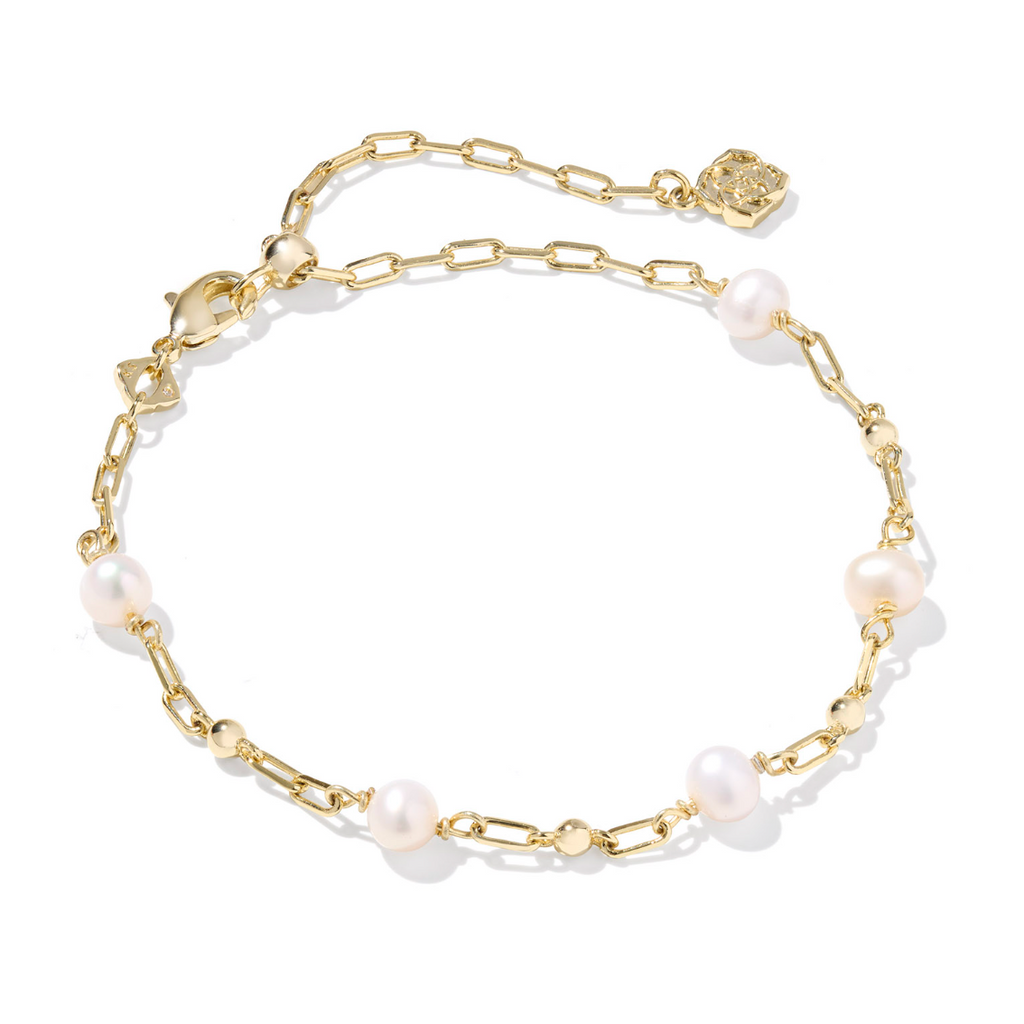 Complete with five freshwater cultured pearls and an adjustable textured paperclip chain, the Ashton Delicate Chain Bracelet is the dainty accessory you’ve been searching for. Wear this piece on its own or with the Ashton Multi Strand Necklace for the perfect pearly pairing.