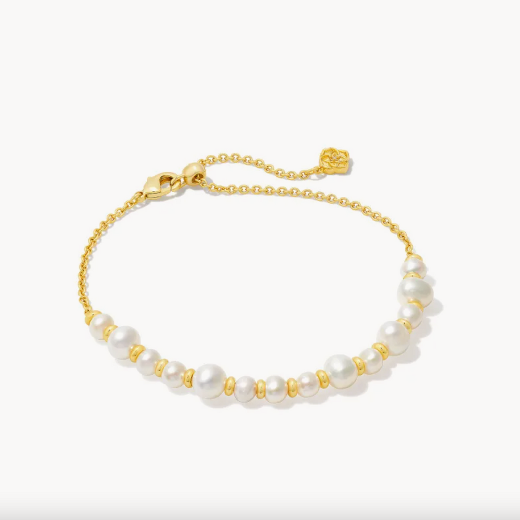 Jovie Gold Beaded Delicate Chain Bracelet in White Pearl - Kendra Scott at Rustic Frio
