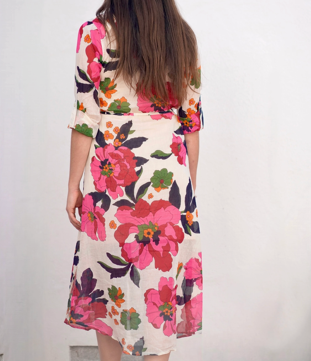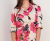 The Reine Shirt Dress is a vacation ready with an easy silhouette and a beautiful floral print. Perfect to throw over and go, the Reine Dress features a three- quarter length sleeves and a front button closure.