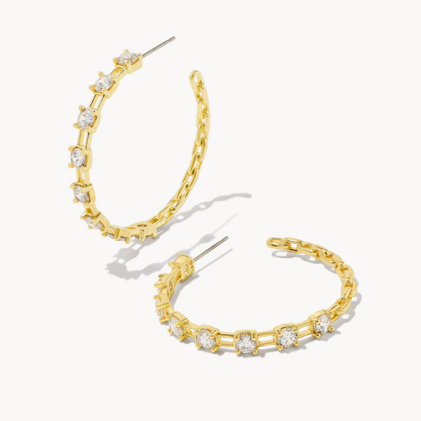 • Kendra Scott Lexi Gold Hoop Earrings in White Crystal
