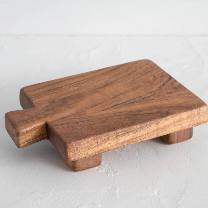 This hand-carved Acacia Counter Riser is the cutest little addition to your bathroom or kitchen! It’s sealed, water resistant and perfect for placing next to the kitchen or bathroom sink to hold your soap. It’s even great for putting a little block of cheese on for parties or family dinners… and it’s such an easy hostess gift because anyone could use one!