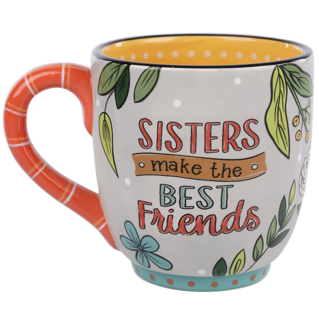 If your sister is your built-in best friend, than this mug is for you and her! Think of your sister each morning as you drink your coffee or tea. Adorned with flowers and hand-painted script this mug is the perfect gift for your sister!