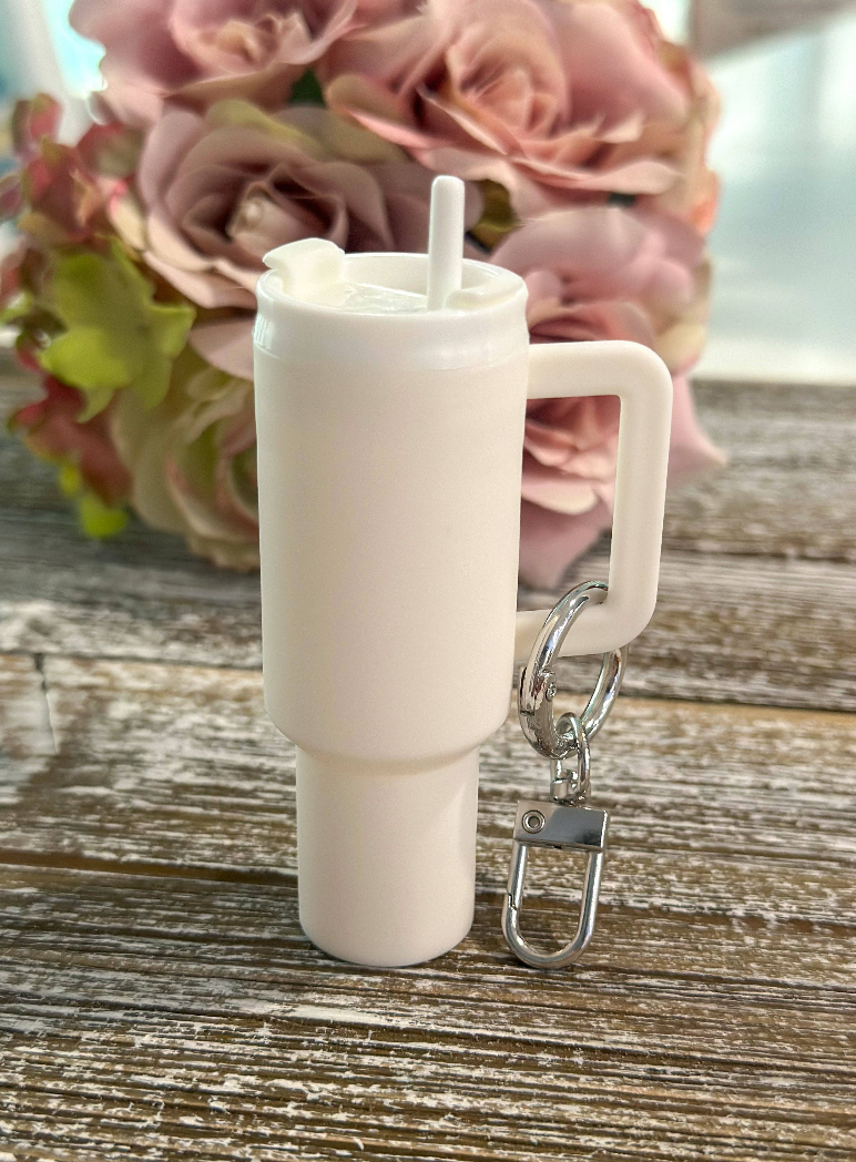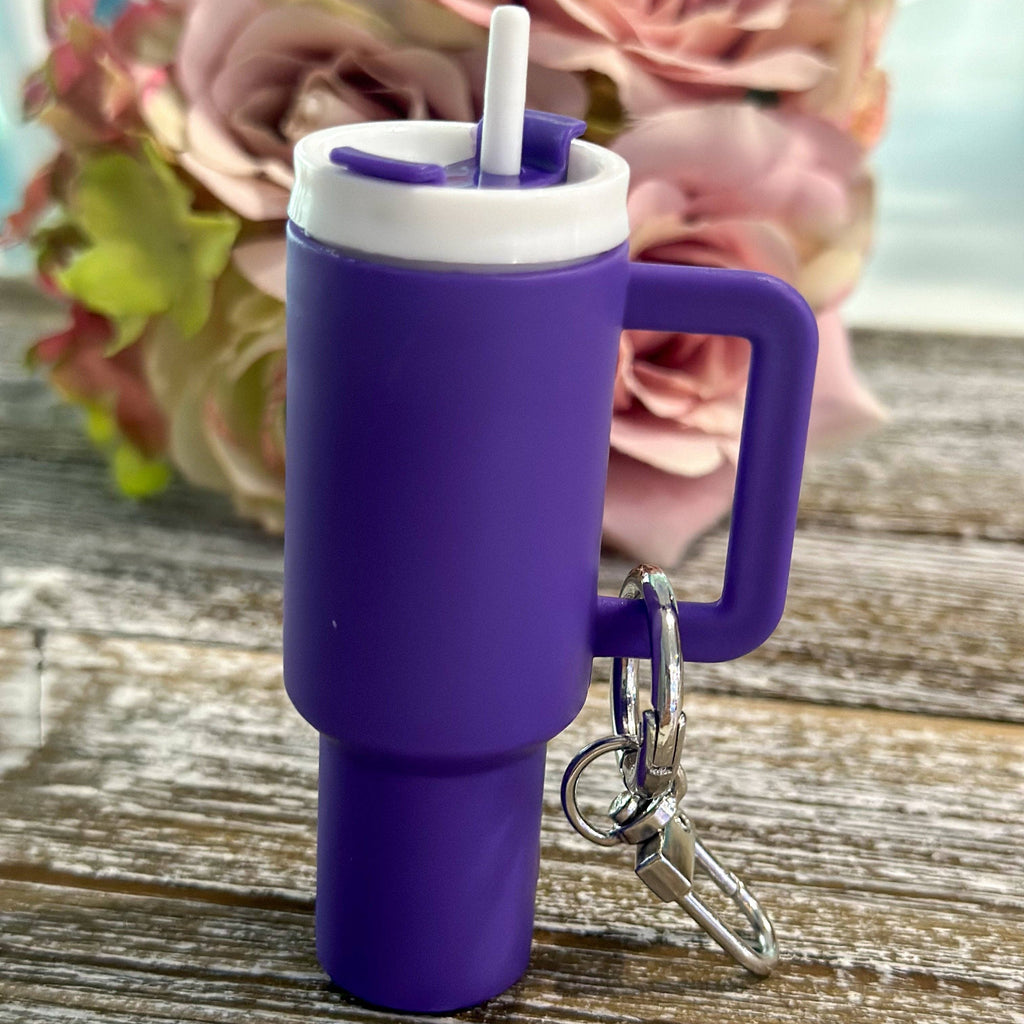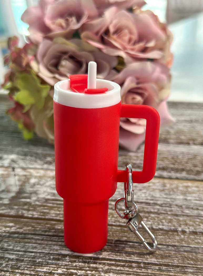 The cutest little keychain has arrived and it's a must have! These cute little cups measure approximately 3-3/4" x 2". The lid opens where you can store your favorite lip balm or money.