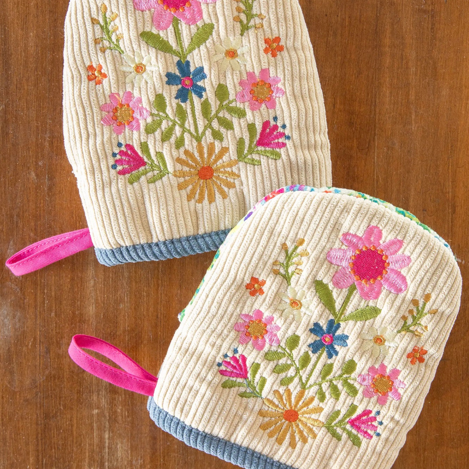 Embroidered Oven Mitt Set - Natural Life at Rustic Frio