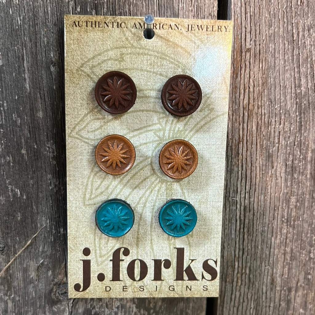 Leather Stud Earrings 3 Pack.