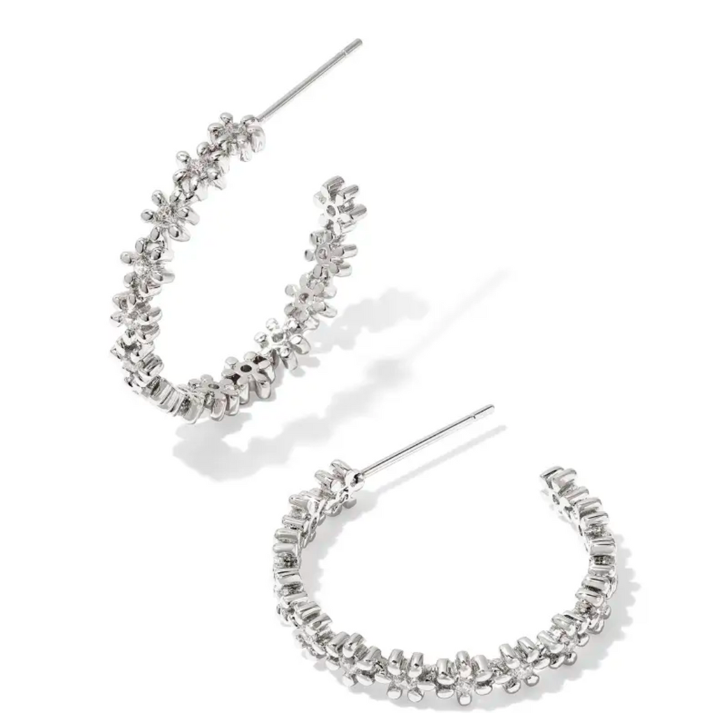 Elevate your ear stack with this latest botanical-inspired style, the Nydia Silver Hoop Earrings in White Crystal. Featuring dainty daisies finished with dazzling crystal details, these playful hoops will freshen up your fit with a one-of-a-kind flourish.