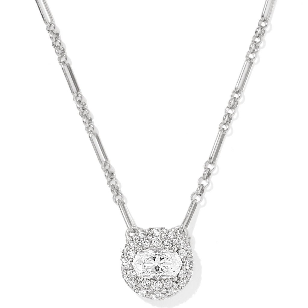Meet the Bella Short Pendant Necklace, designed to make your necklace stack look more luxurious than ever. Featuring a round pendant dusted with cubic zirconia accents and a custom-cut crystal in our iconic Elisa shape at its center, this necklace is set to stun. Try pairing it with the Bella Stud Earrings for a perfectly coordinated look.