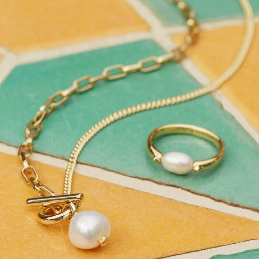 Half bold link, half dainty chain, the Leighton Convertible Gold Pearl Chain Necklace in White Pearl truly gives you the best of both worlds. Plus, the cultured freshwater pearl pendant is removable, letting you mix up your look from day to night.