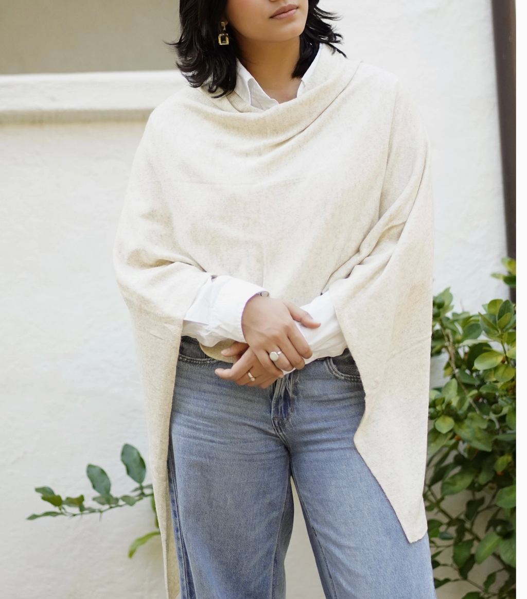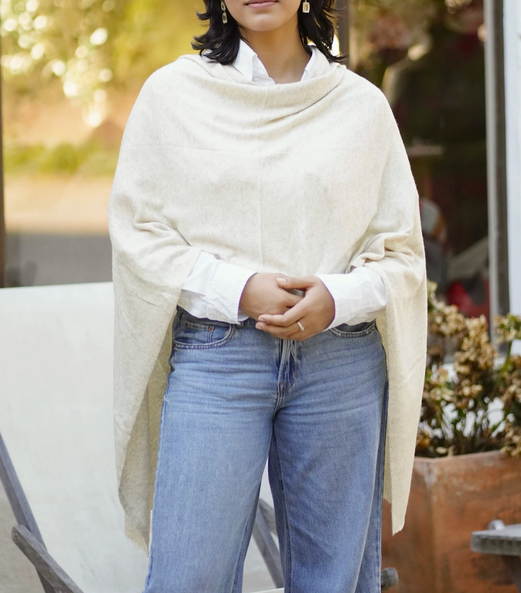 Luxe and elegant; our dreamy cashmere poncho is wonderfully soft, and a handy throw-on poncho. A stylish layering piece which works as a great alternative to a cardigan, the poncho has a relaxed fit with a flattering draping at the neck, and a modern asymmetrical hem. Looks great over a basic tee and jeans or chic over oxford shirts and dresses.
