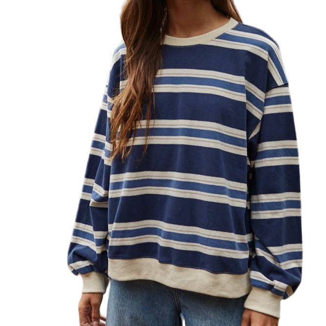 Knit Cotton Striped Crew Neck Long Sleeve Top - By Together at Rustic Frio