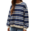 Knit Cotton Striped Crew Neck Long Sleeve Top