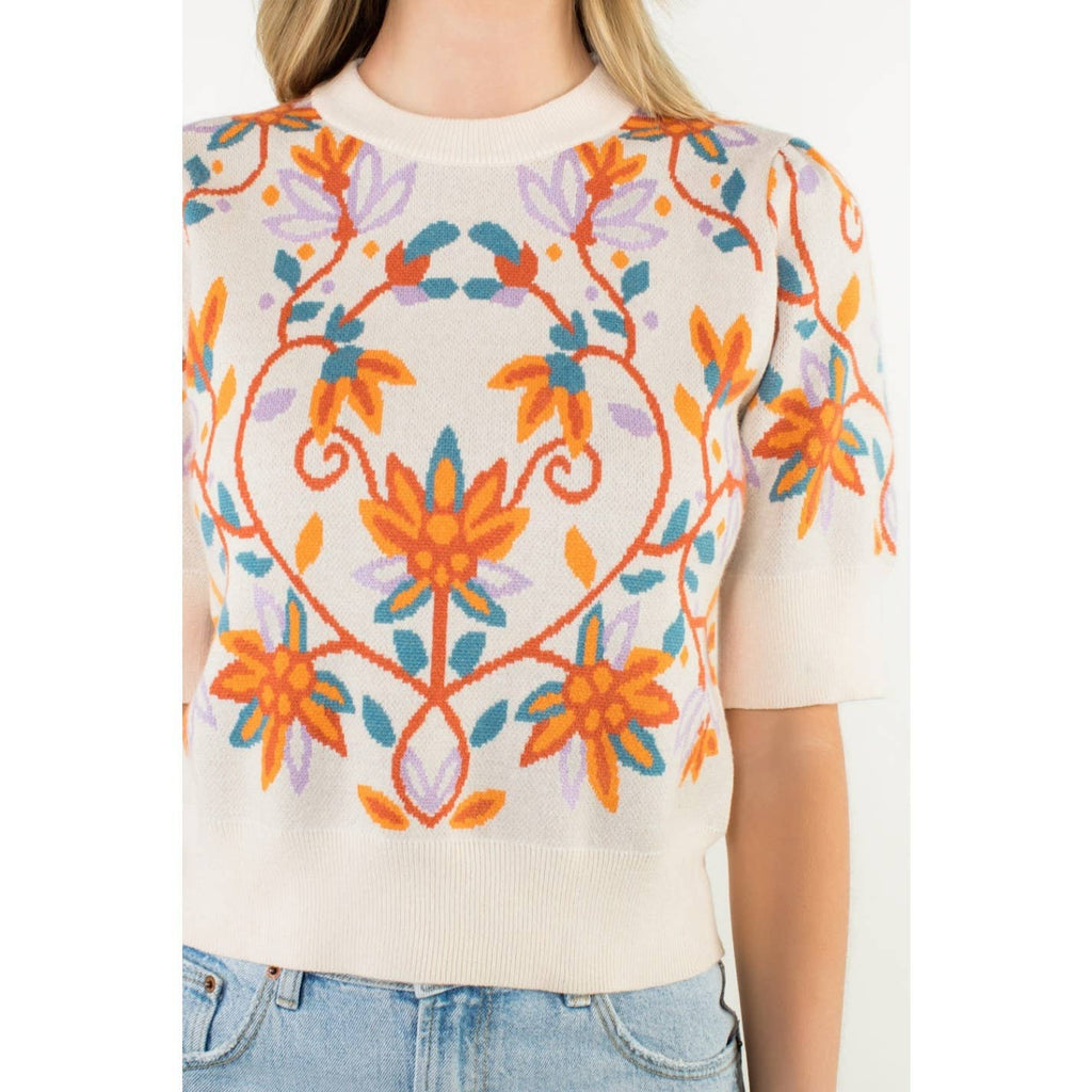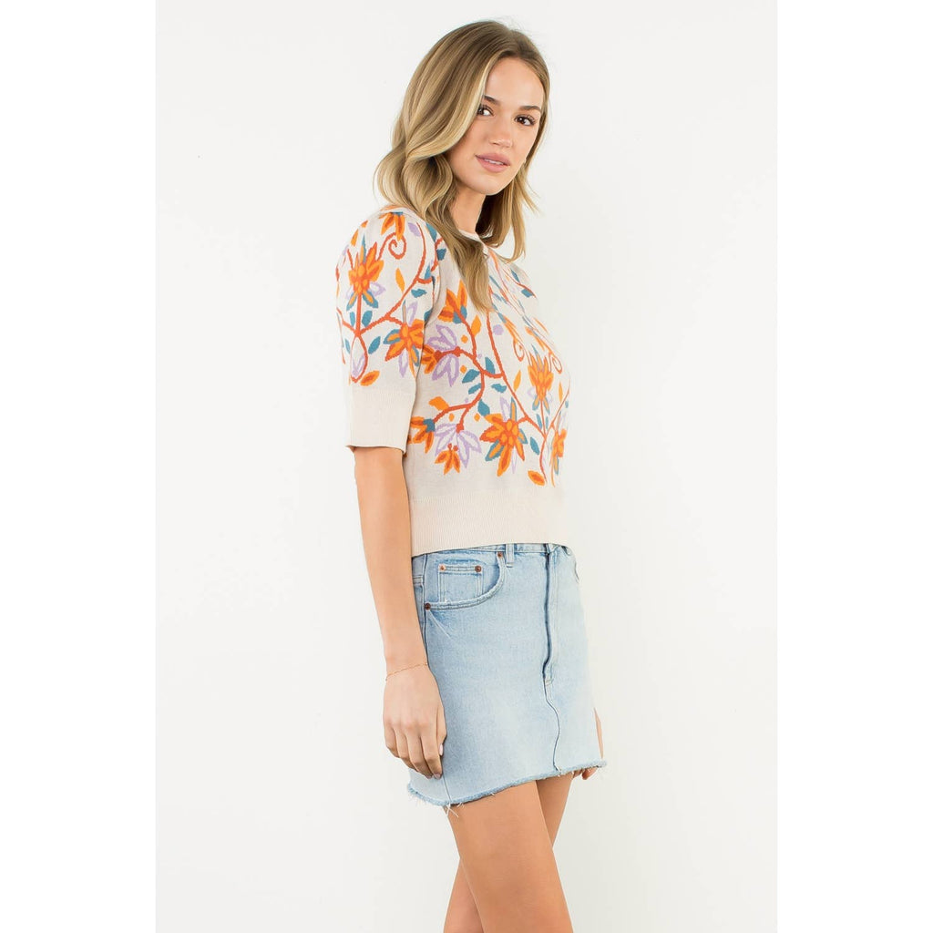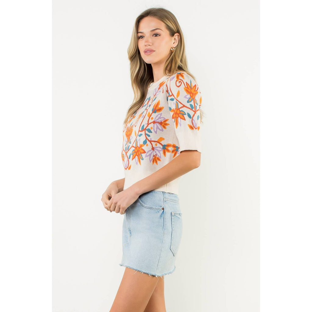 Short Sleeve Floral Knit Top - THML at Rustic Frio