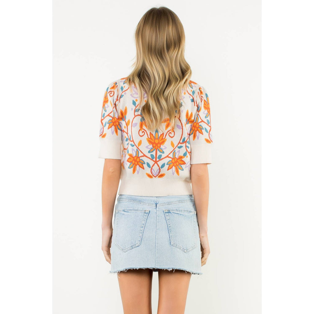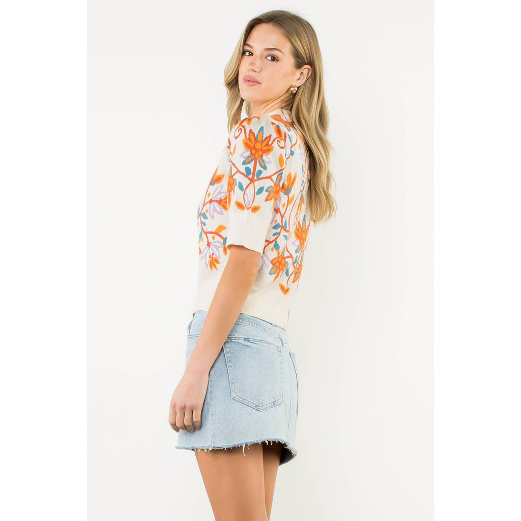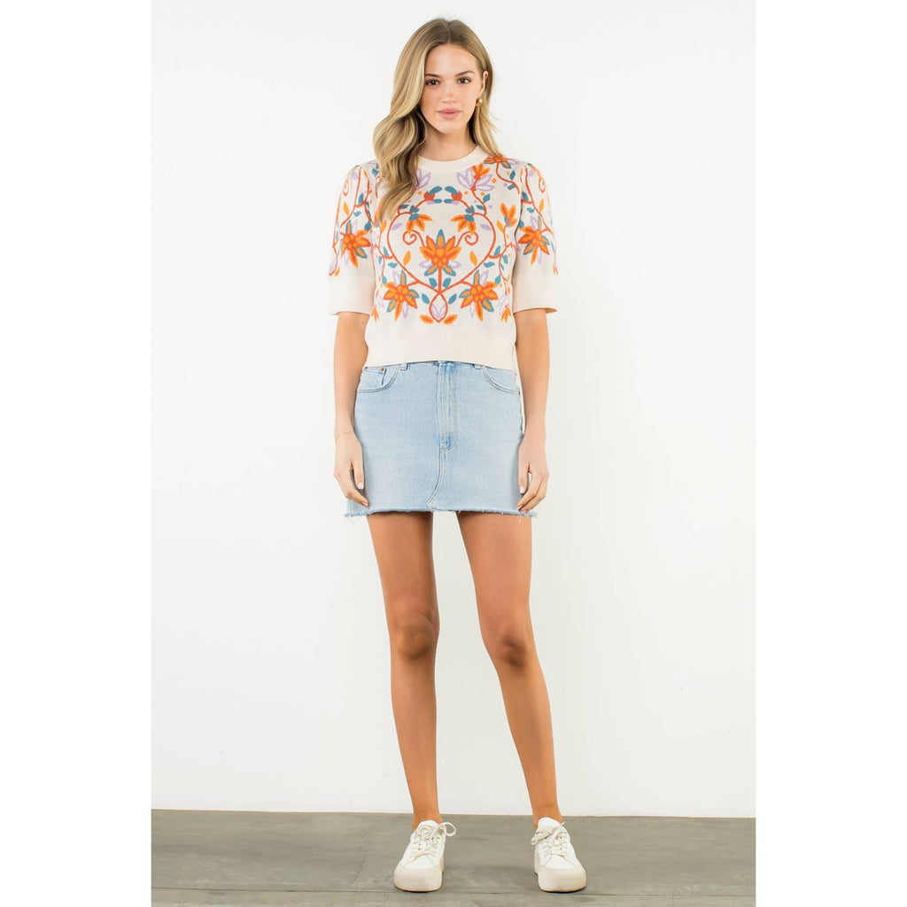 Short Sleeve Floral Knit Top - THML at Rustic Frio