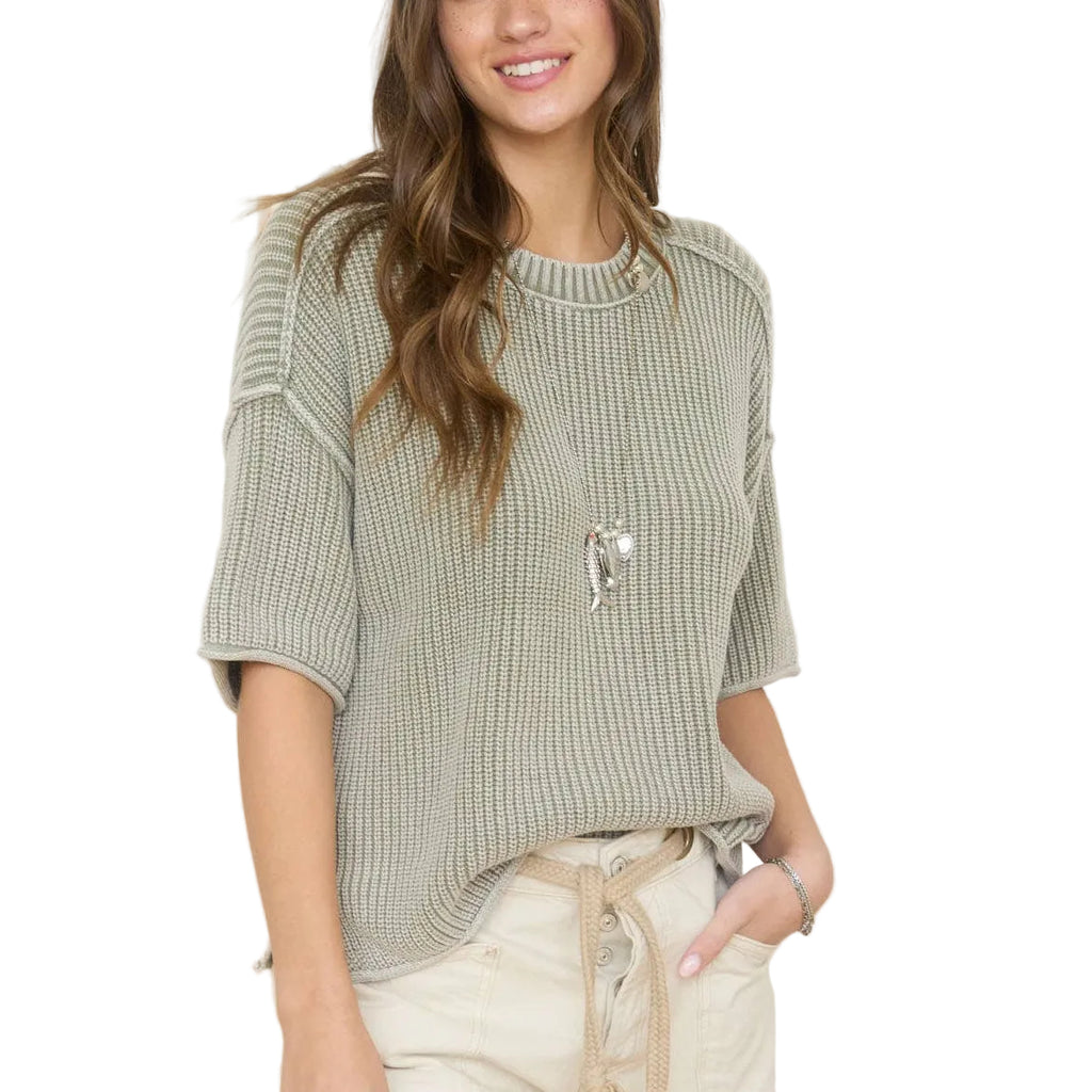 Slip into effortless style with this laid-back knit top that's got all the cozy vibes. Featuring a relaxed boxy silhouette, drop shoulders, and that coveted raw-edge aesthetic, it's the perfect piece for casual days. The soft cotton-acrylic blend (60/40) keeps things breathable and comfortable, while the washed pattern adds character. Crew neckline, short sleeves, and exposed seams complete the relaxed-cool look. Your new go-to for looking put-together without trying too hard.