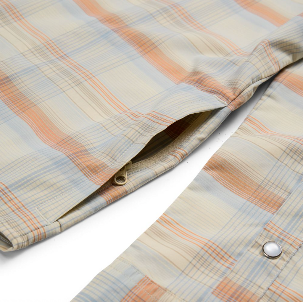 • UPF 35, sunglass cleaning microfiber at hem, hidden zipper pocket at lower right side seam, vented back yoke, wrinkle resistant