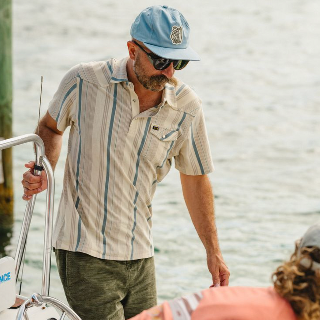 Slip into the Howler Bros Shores Club Old Bill Shirt and channel your inner coastal wanderer. Crafted from 100% cotton with a crisp striped pattern and natural linen feel, this laid-back layer keeps you cool whether you're dockside or downtown. The soft limestone colorway pairs effortlessly with everything in your rotation. Perfect for those days when you want to look like you just rolled in from an adventure—even if you're just heading to the coffee shop.