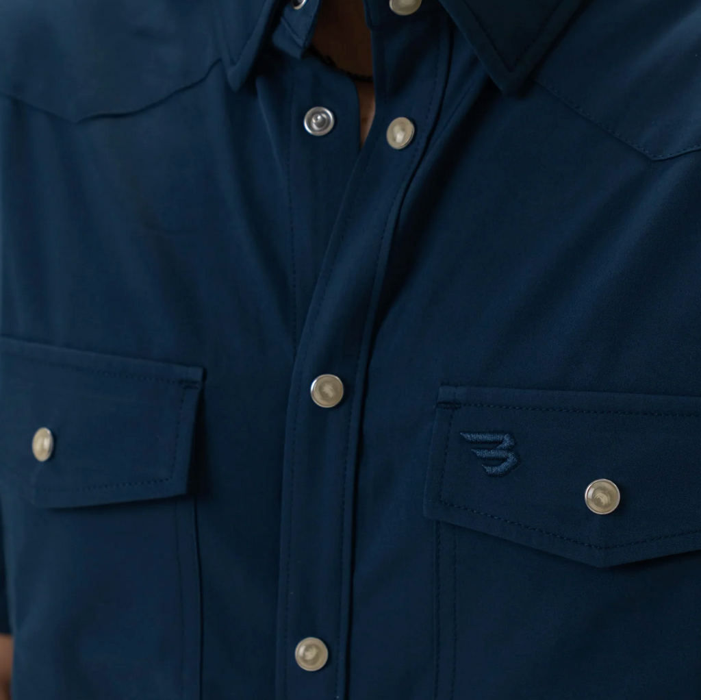 The Performance Western Shirt, crafted for the modern individual who values both style and functionality. Made from a premium blend of 90% Polyester and 10% Spandex, this button-up offers lightweight performance and superior comfort. Constructed from a lightweight performance fabric, designed to keep you cool and comfortable all day long. The breathable, quick-dry, and moisture-wicking properties ensure you stay dry and fresh, while the four-way stretch fabric provides maximum flexibility and mobility.