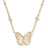 Complete with custom-carved stones to bring this beautiful motif to life, the Cailey Butterfly Gold Short Pendant Necklace will be a stunning addition to your collection. Inspired by sunlight streaming through a garden, this reversible necklace features sparkling cubic zirconia accents on a delicate chain. This classic butterfly shape is accented by metallic beauty marks for a fluttery and fabulous look.