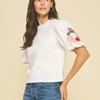 Mixed Media Top with Floral Detailed Sleeve