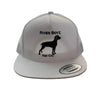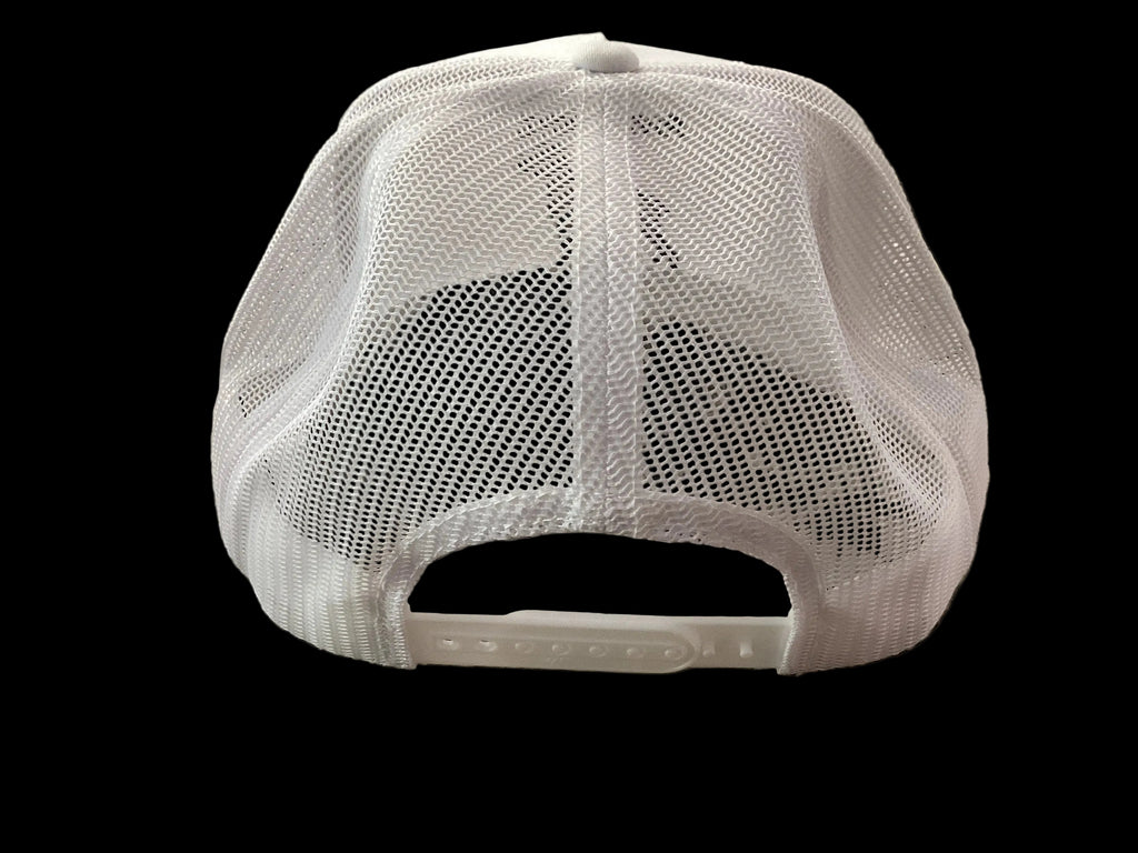 Locally made River Boyz hat featuring a classic mesh back design for breathability and comfort. White crown with bold black embroidered artwork depicting a hunting dog—perfect for outdoor enthusiasts and hunting culture fans. Adjustable fit and durable construction make it ideal for field days or casual wear. A standout piece from a regional maker with authentic hunting heritage.