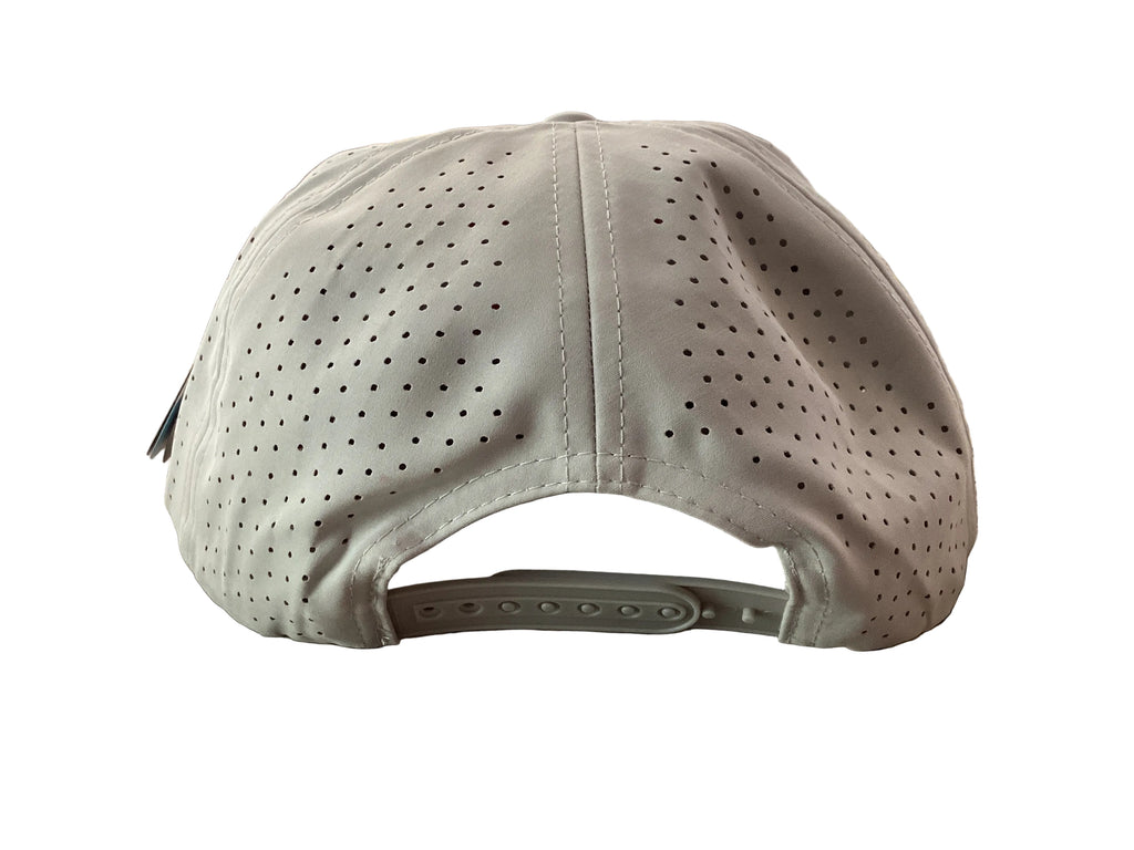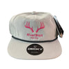 Locally made River Boyz hat featuring a classic light grey hat with a bright pink design, and a breathable mesh back panel for all-day comfort. Bold pink lettering and antler embroidery create a distinctive rustic aesthetic perfect for outdoor enthusiasts and casual wear alike. Lightweight construction keeps you cool whether you're on the water or around town.