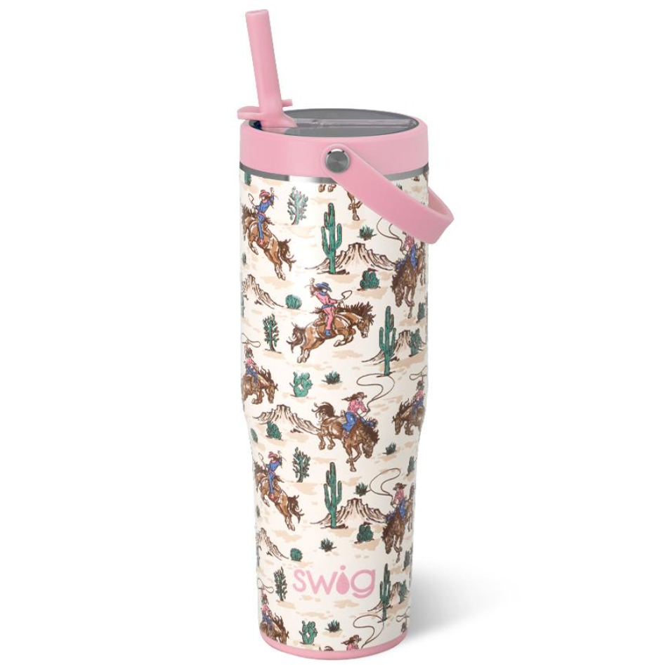 This To-Go tumbler combines our new dual threaded Flip + Sip leakproof lid, flex carry handle, and is cup holder-friendly. The straw features a curved tab that makes it easy to flip open for smooth sipping. When you're on the go, snap the straw shut for a leakproof, worry-free experience.