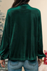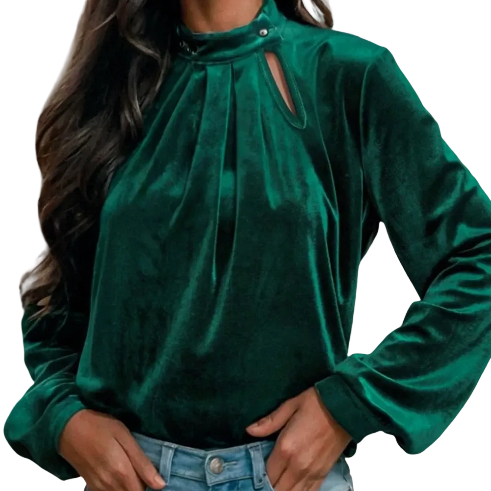 Slip into sophistication with this dark green velvet long sleeve blouse, where a cheeky keyhole detail at the neckline adds just the right amount of intrigue. The luxurious velvet fabric drapes beautifully while keeping things cozy, making it perfect for elevating your everyday look or dressing up for a night out. A playful twist on classic elegance that'll have you feeling fabulous.